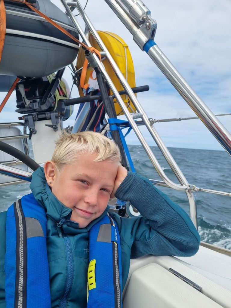 Men som så ofte – det varer ikke evig. Mellom Bardsey Island og fastlandet dreide vinden, og vi endte opp i platt lens. Forseilet blafret som et oppgitt flagg, og da strømmen samtidig snudde og møtte bølgene som allerede var der, ble det hele litt voldsomt. Det føltes som om båten ble kastet rundt i en vaskemaskin. Det er rart hvordan slike øyeblikk kommer brått – alt går fint, og så plutselig: kaos.