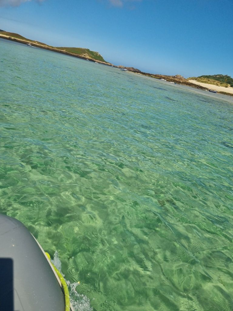 Etter noen timer på stranden var vi mer enn fornøyde med sol og sand for dagen. Begge båtene satte kursen mot St. Mary’s, der vi fant ankringsplass på utsiden av havna. Her skal vi ligge og vente på riktig værvindu før vi setter kursen over Biscaya – et lite mellomspill før neste lange seilas. Som flere ganger før kom vi i grevens tid, og fikk plassert ankeret før plassen fylte seg veldig opp.