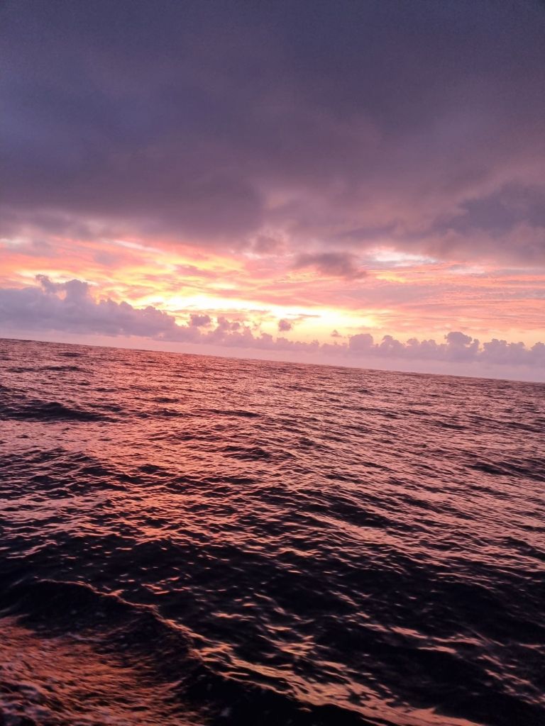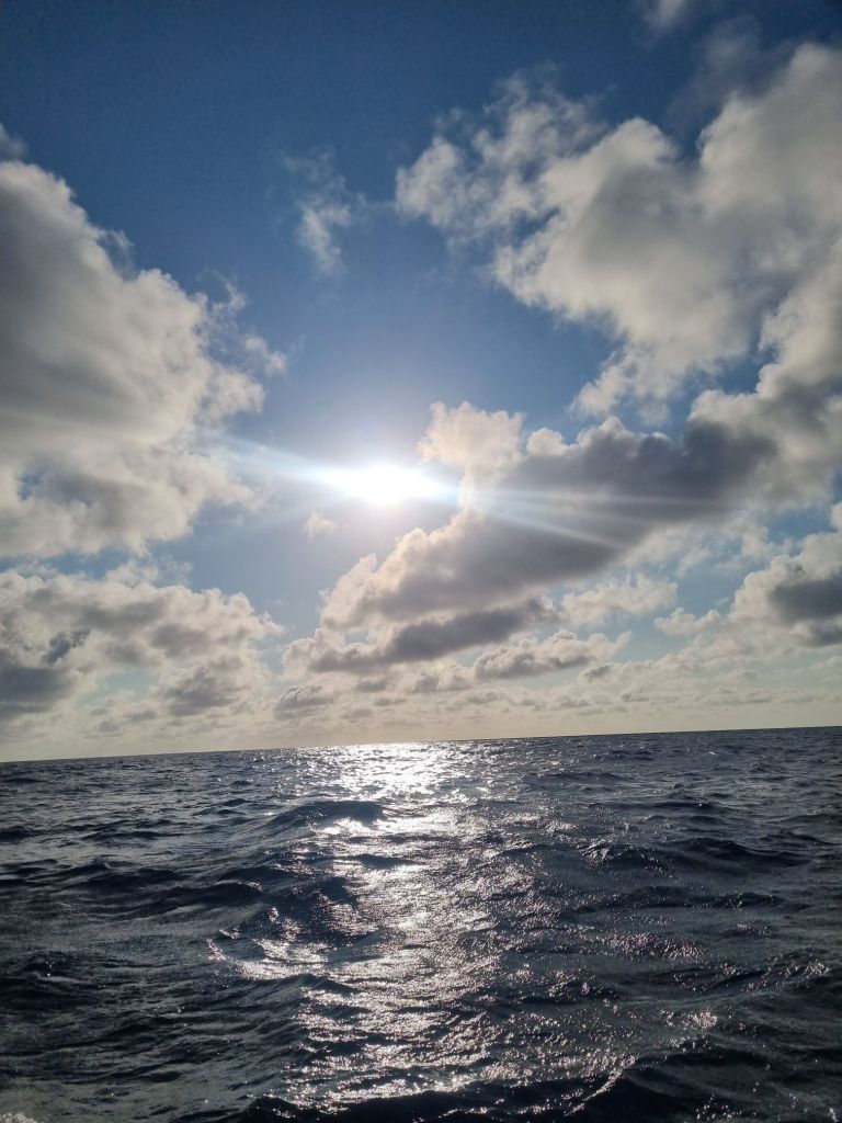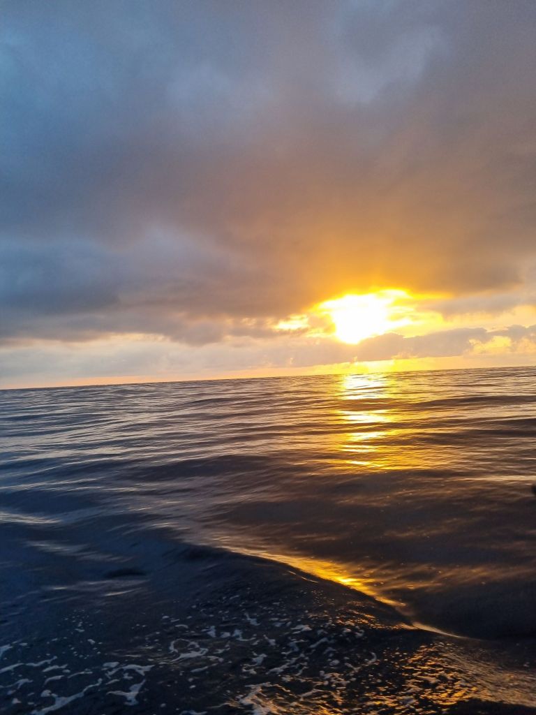 Likevel er det umulig å bli lei av havet. Delfinene var like velkomne hver gang de dukket opp, og himmelen malte nye bilder for oss hver dag, med vakre horisonter å hvile øynene på