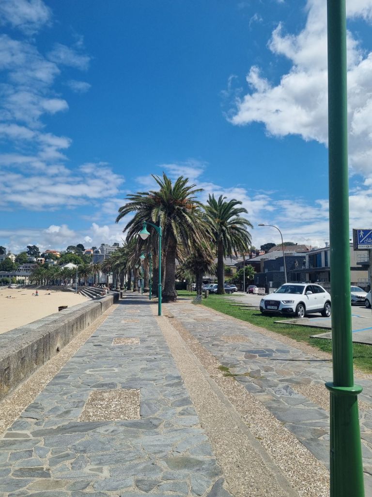 Nå ser vi at det nærmer seg litt ruskete vær – store bølger fra USA er på vei inn tidlig neste uke. Før de kommer håper vi å rekke litt lenger sørover, slik at vi kan finne en mer skjermet plass å ligge. I dag flyttet vi oss derfor ut fra Santa Christina til Playa de Espiñeiro, hvor vi blir liggende før vi setter kursen videre sørover i morgen tidlig.