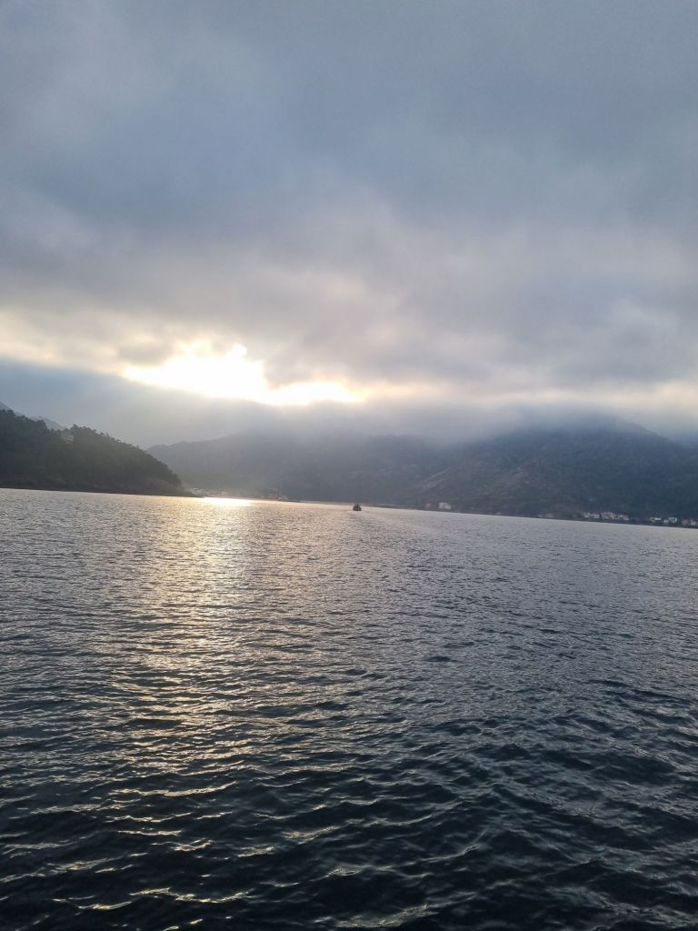 Vi satte kurs videre fra Praia de Sardiñeiro og inn mot Ría de Muros y Noia. Planen er å ligge der og vente ut været(store bølger) som kommer fra USA i begynnelsen av neste uke. Dagen startet disig..