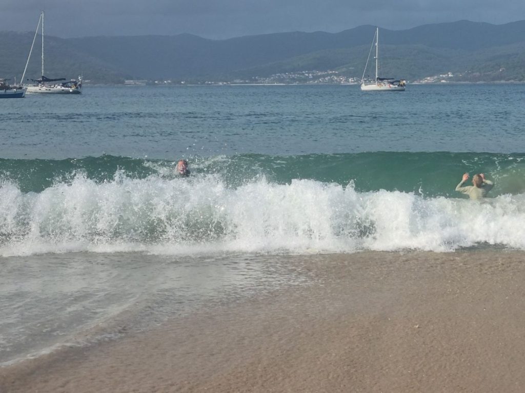 Etter hvert la vi oss ganske langt ut i fjorden, utenfor den nydelige sandstranda Praia de Aguieira.