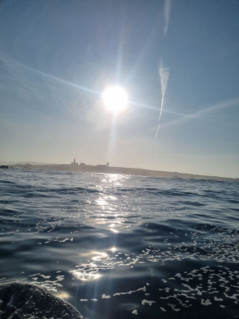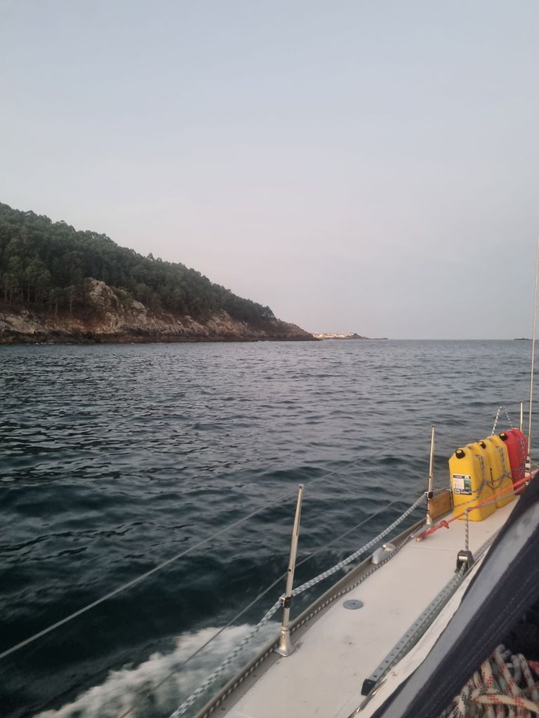 Den 5. september lettet vi anker ved Praia de Aguieira og satte kursen sørover mot Baiona. Vinden var beskjeden, så mesteparten av turen ble motorseiling, med unntak av et lite strekk langs Cíes-øyene der vi fikk dratt ut forseilet og kjent på følelsen av litt seilvind igjen.