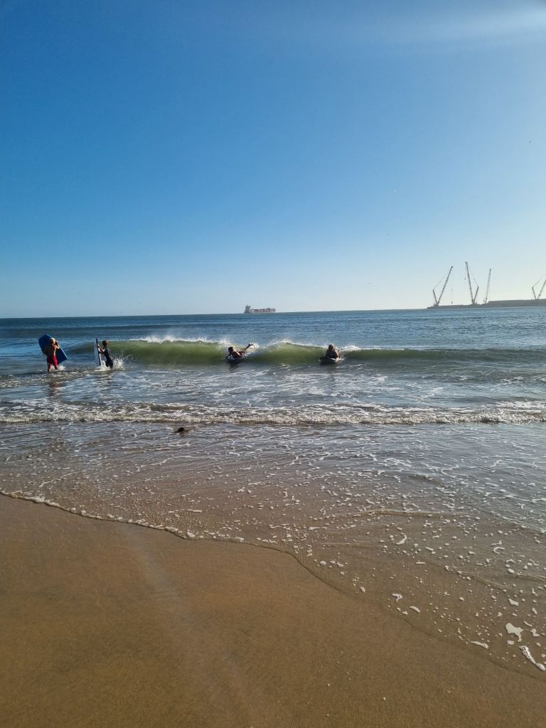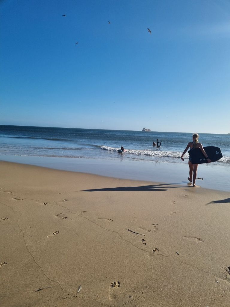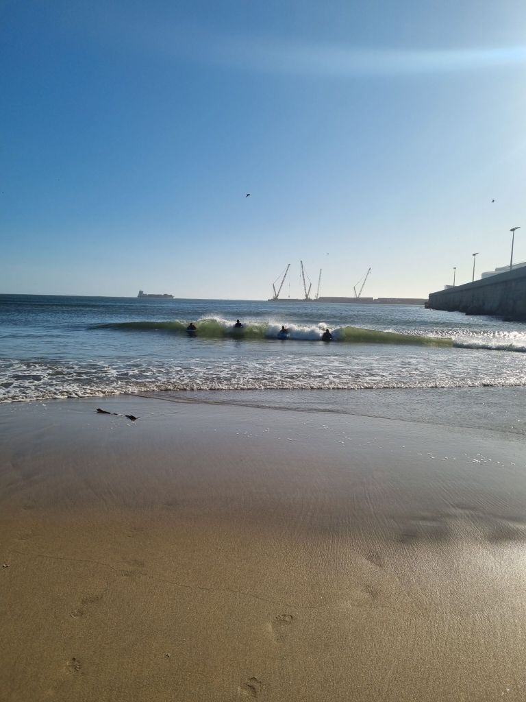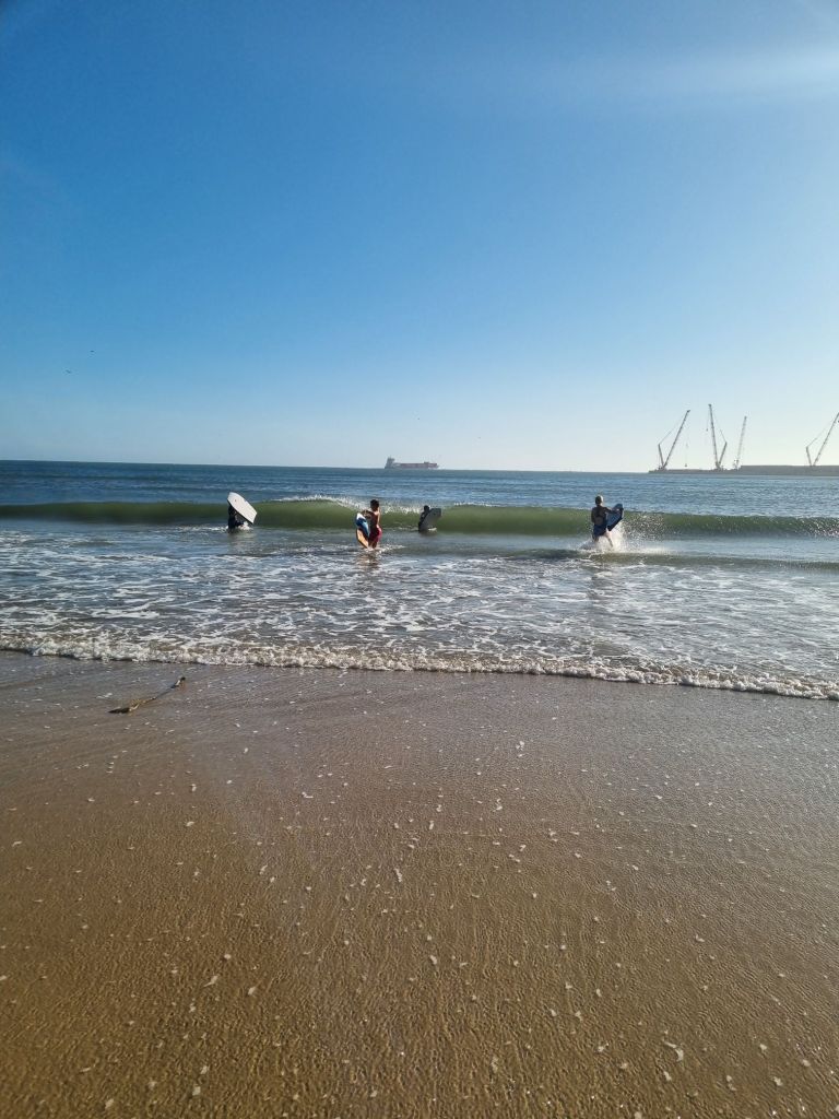 På land har vi opplevd mye forskjellig. Hele gjengen fra de tre båtene dro sammen til stranda Praia de Matosinhos, hvor bølgene ga perfekt testterreng for de nyinnkjøpte bodyboardene. Timene fløy av gårde i vannet, med latter og konkurranse om hvem som fikk best tak på bølgene og kom lengst inn på stranda.