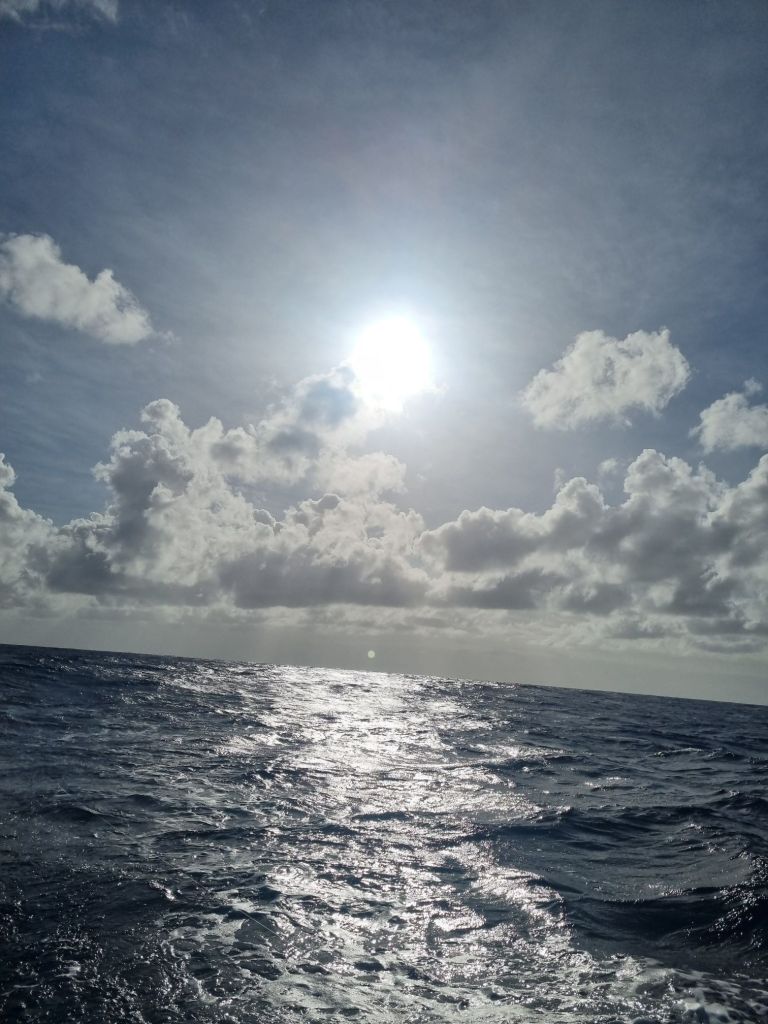 Når disse hadde blåst forbi ble det en dag med mye flott vær. Bølgene er fortsatt så som så, men det kunne vært mye verre. Mye avslapning, lydbøker og nyting av solen var det som ble gjort. Til middagen i dag spiste vi den Mahi mahien vi fanget tidligere på turen. Ingeborg disker som vanlig opp nydelig mat. Vi har også rundet sub 200nm på nedtelling før landkjenning, så det har blitt litt refleksjon rundt turen over dammen også.