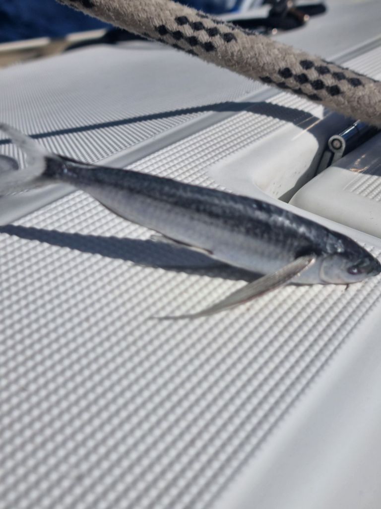 Døgnet forsyver seg litt etter litt når vi har satt vaktene våre etter UTC tid, så det tar litt lengre tid før solen står opp hver dag. Men når først solen gløtter litt, går fiskesnøret i vannet. Nattevaktene har denne natten også gått uten nevneverdige hendelser. Flere bananer når sitt modningspunkt, så deilig bananbrød i dag også 🙌🤤 2 fisker har vært bortom kroken vår i dag også, den ene slapp vi ut igjen, da den ikke var så veldig stor og vi fremdeles har igjen fra gårsdagens fangst, nr 2 frigjorde seg selv før vi rakk å få den ombord. Dagslyset er nå i ferd med å ebbe ut, og nattevaktsrotasjonen trer igang igjen.