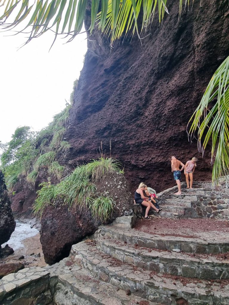 Vi tok også turen til Fort Duvernette, et lite historisk fort som ligger på en bratt, bitteliten øy rett utenfor Young Island. Fortet ble bygget av britene på 1800-tallet for å beskytte innseilingen til Kingstown. Turen opp går via lange murtrapper hugget inn i fjellet, og det er bratt – men absolutt verdt det. Utsikten fra toppen gir panoramablikk over Kingstown, Young Island og havet rundt.