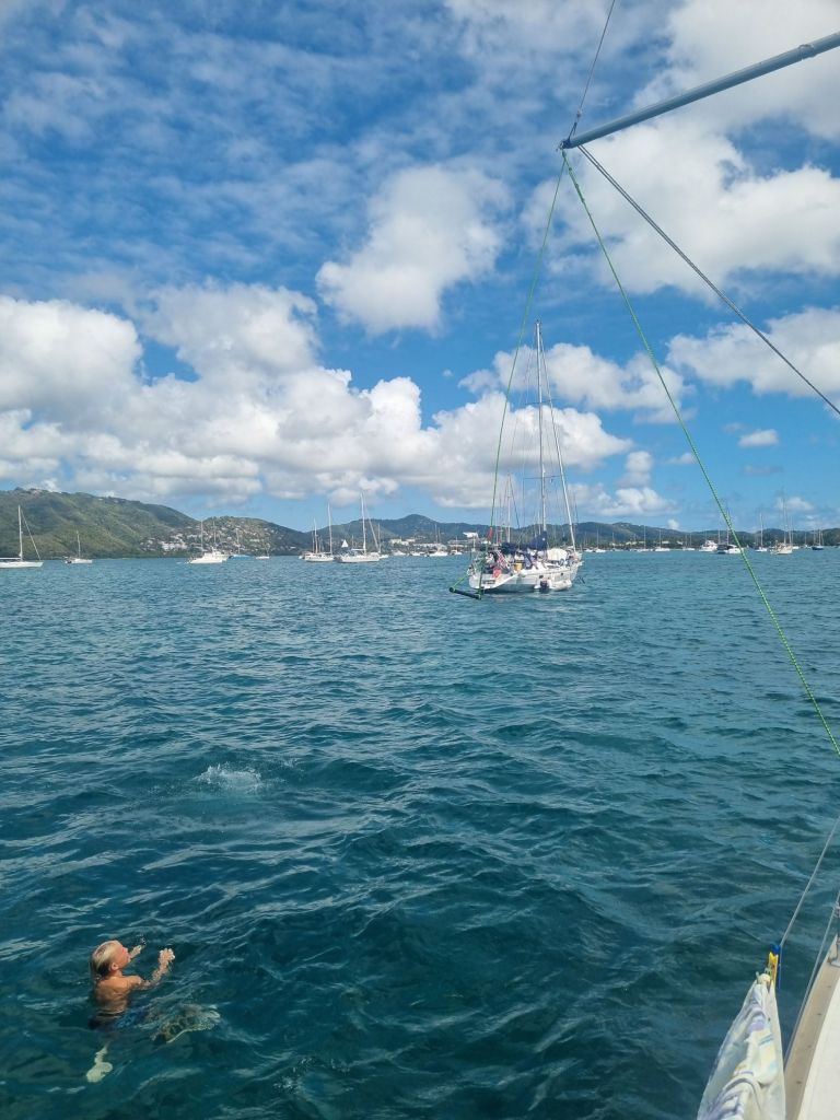 12. februar, etter en rolig periode i Saint Anne, dro vi videre til Les Trois-Ilets. Her ankret vi opp utenfor en fin strand, med en kort jolletur inn til land.