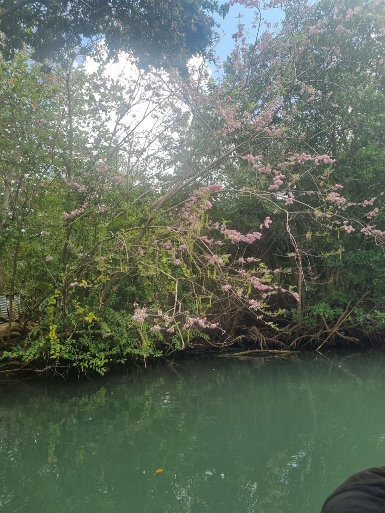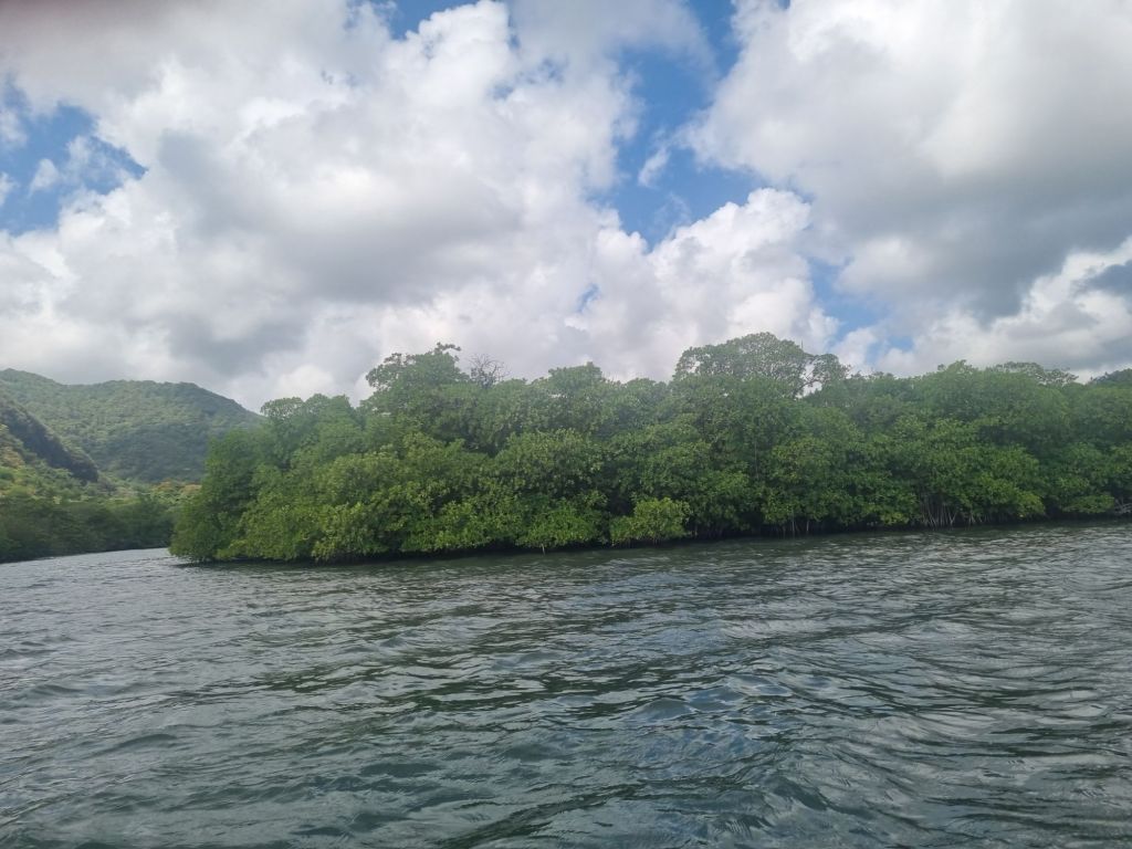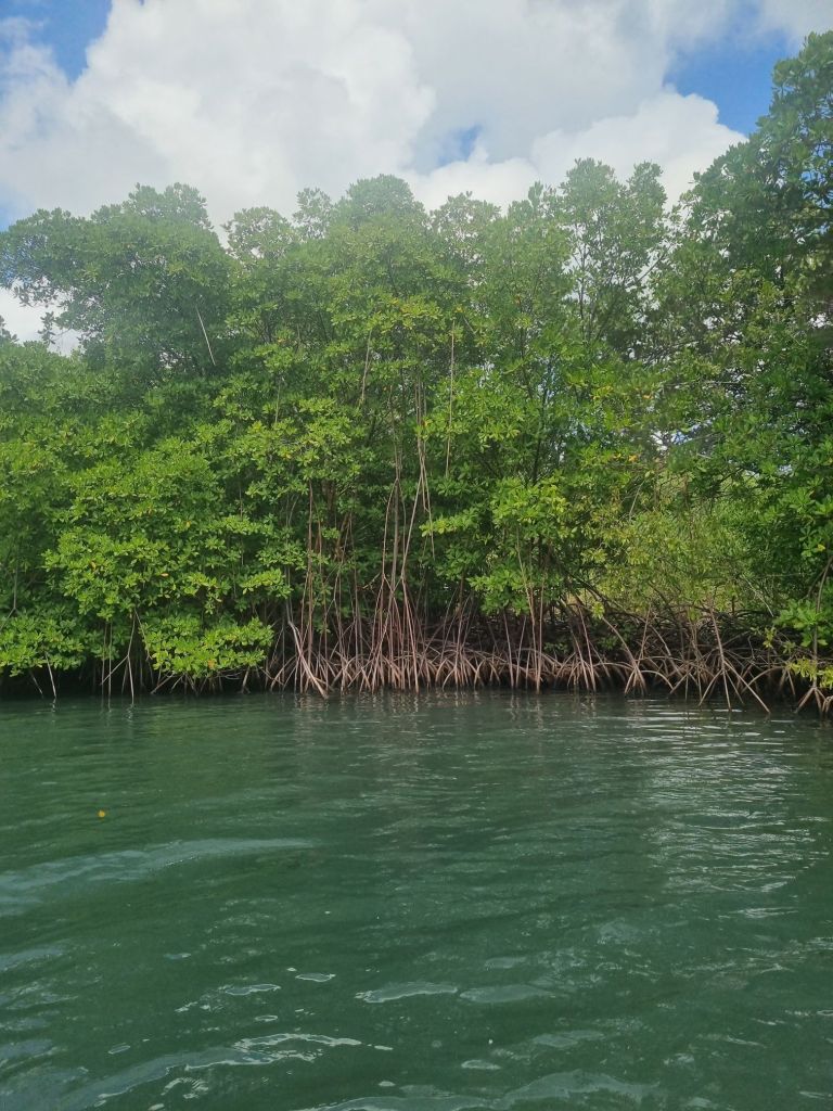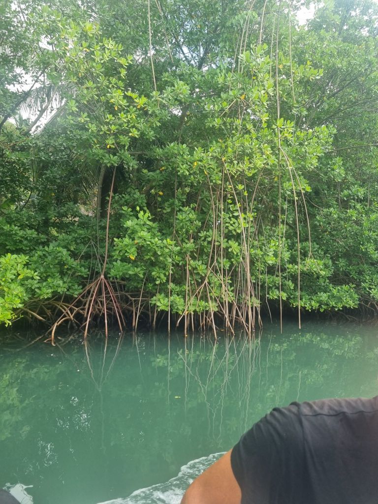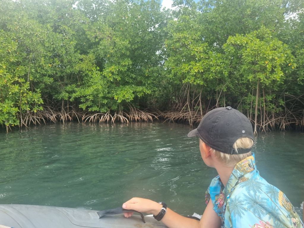 Det å ligge i denne bukta var praktisk også. Le Marin er kjent for å ha rikelig utvalg av båtutstyr og deler, så naturlig nok hadde vi (som alltid) noe å lete etter og kjøpe inn for å utbedre et prosjekt i båten. På vei inn til Le Marin kjører man jolla si gjennom en kanal med mangrovetrær på begge sider. En artig opplevelse.