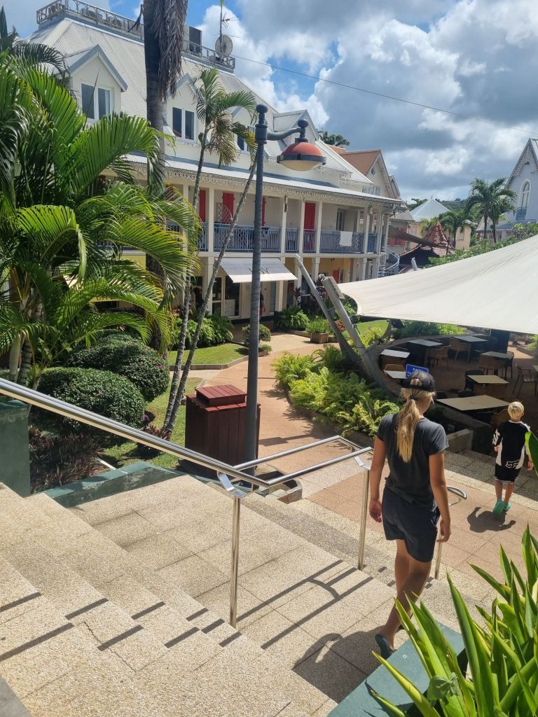 Selve «sentrum» viste seg å være en sjarmerende liten plass, med smale gater, små kafeer, butikker og en rolig sommer-og-sol-vibe. Fra ankringen ser vi over til Fort-de-France, som er neste stopp på planen.