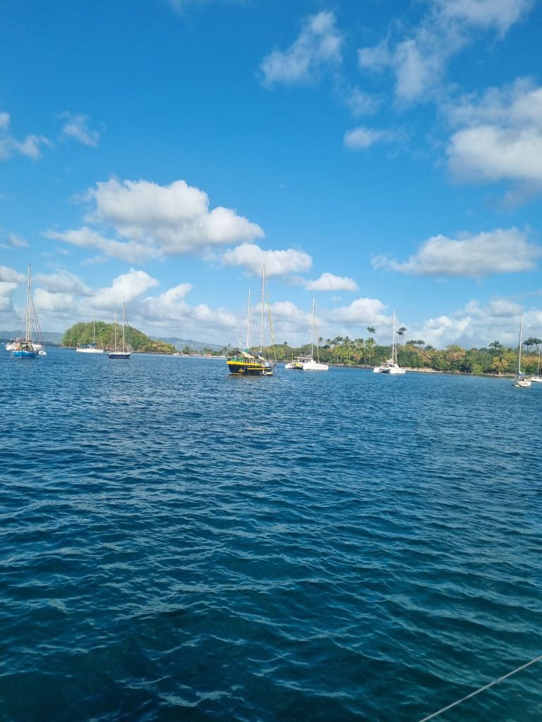 Vi kom til Sainte-Anne den 6. februar, og fant oss en plass i (den store) ankringsbukta. Det var utrolig mange båter her, så vi fant oss en plass hvor vi hadde litt plass rundt oss, samtidig som vi lå ganske midt i klynga.