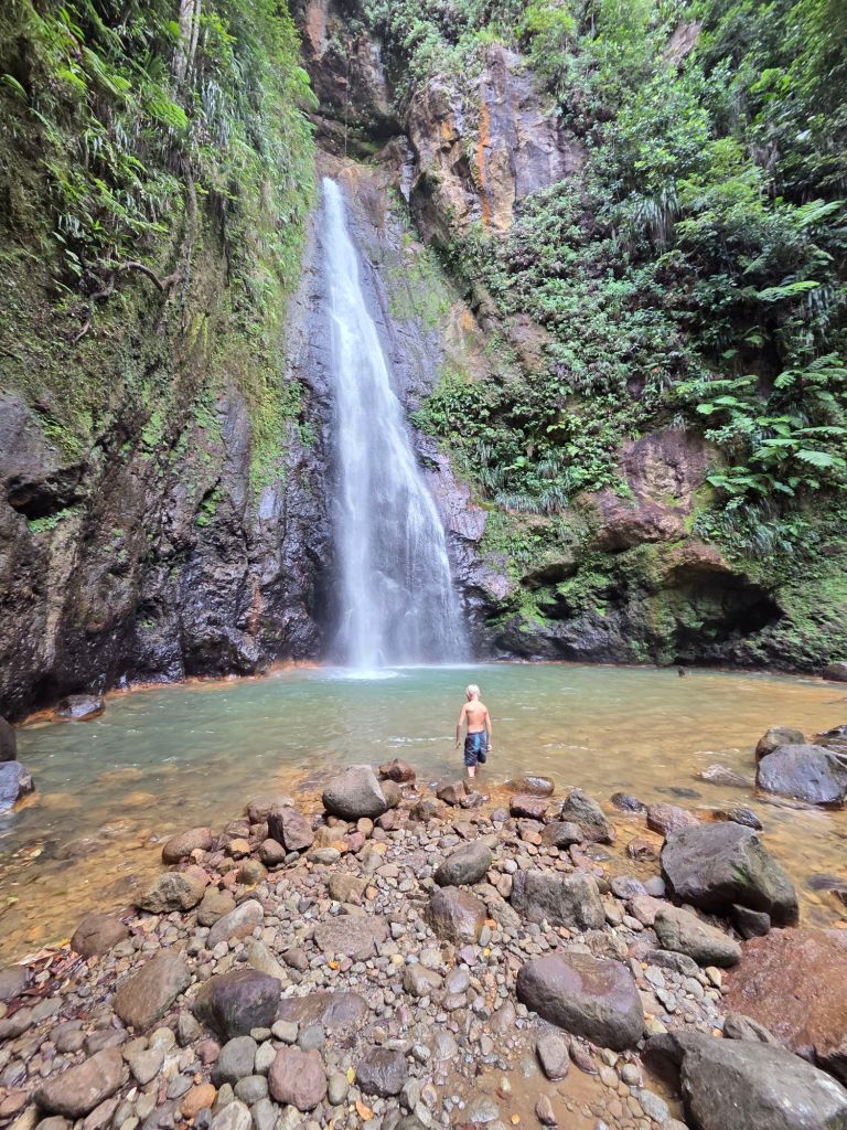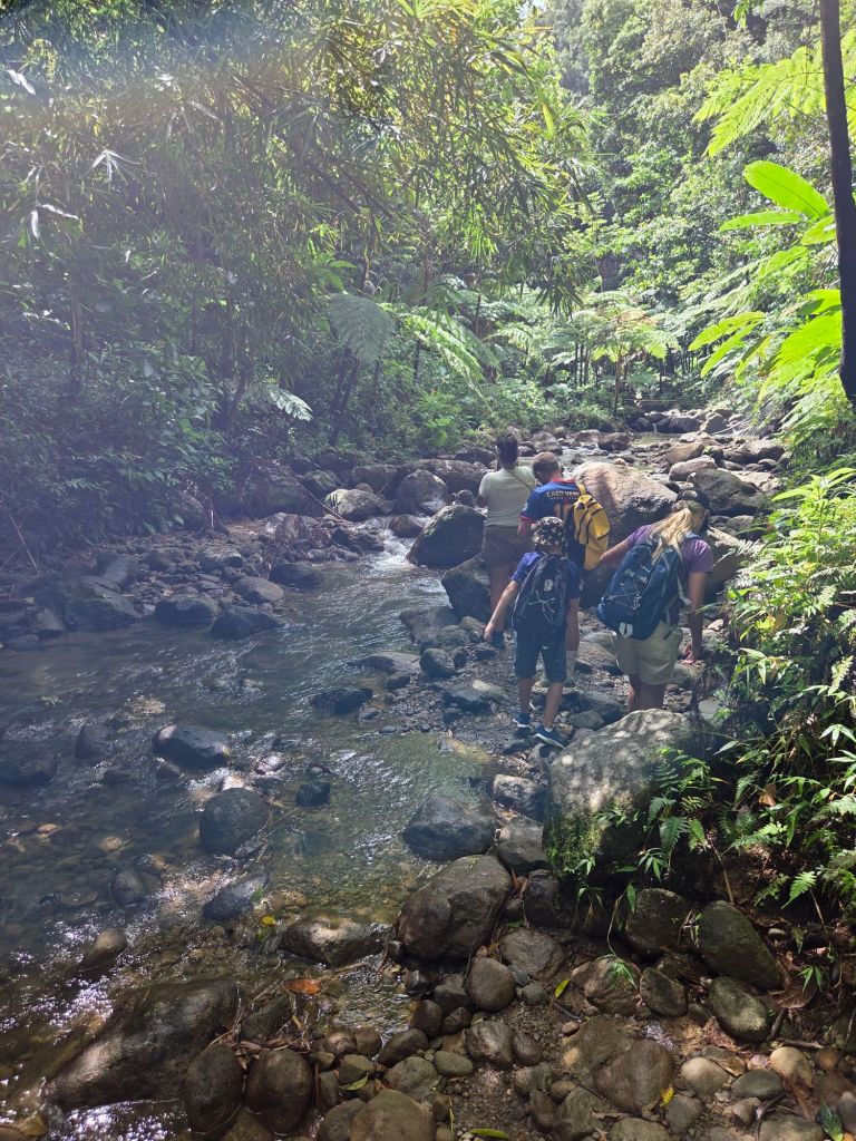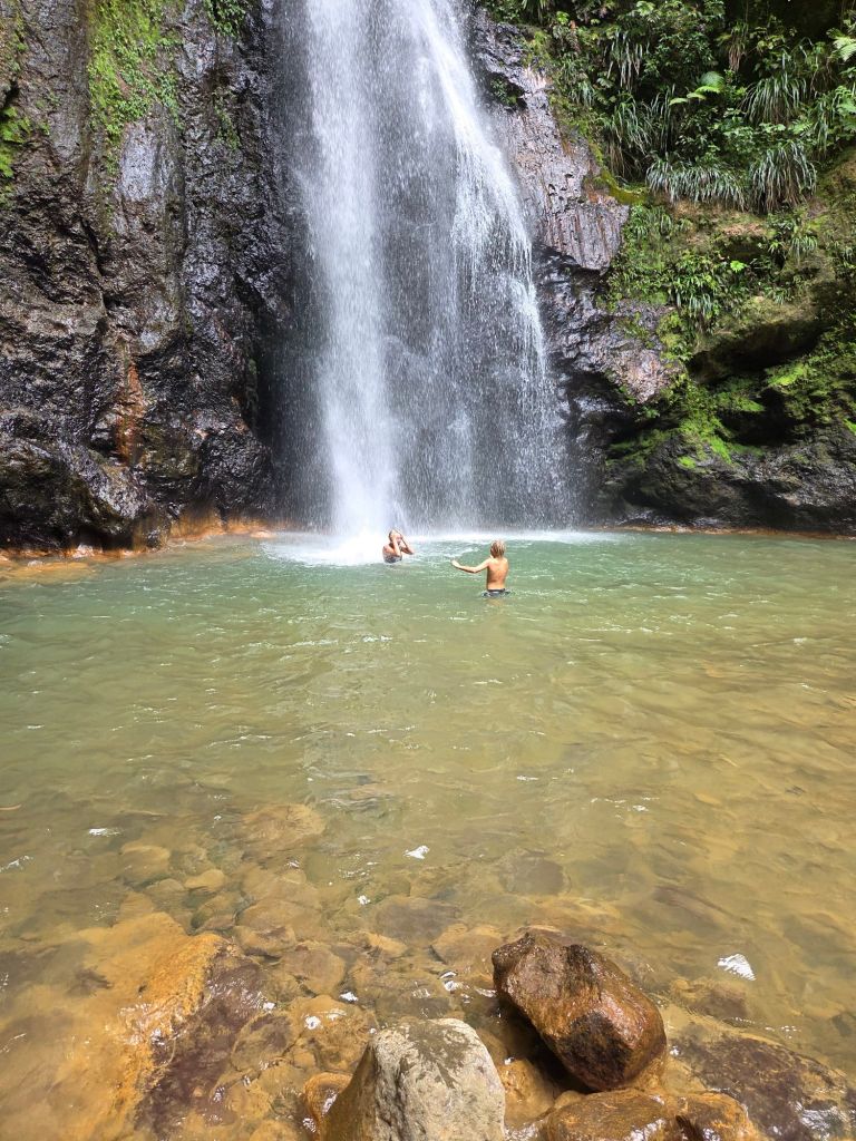 1. mars var vi nok en gang klare for eventyr og input, så vi tok en guidet tur på øya. Vi startet med en tur til Syndicate falls, et flott fossefall inne i den frodige regnskogen i Morne Diablotin nasjonalpark, nord på Dominica. Her badet ungene i det friske og kalde vannet, og fikk seg en skikkelig massasje når vannet traff skuldrene.