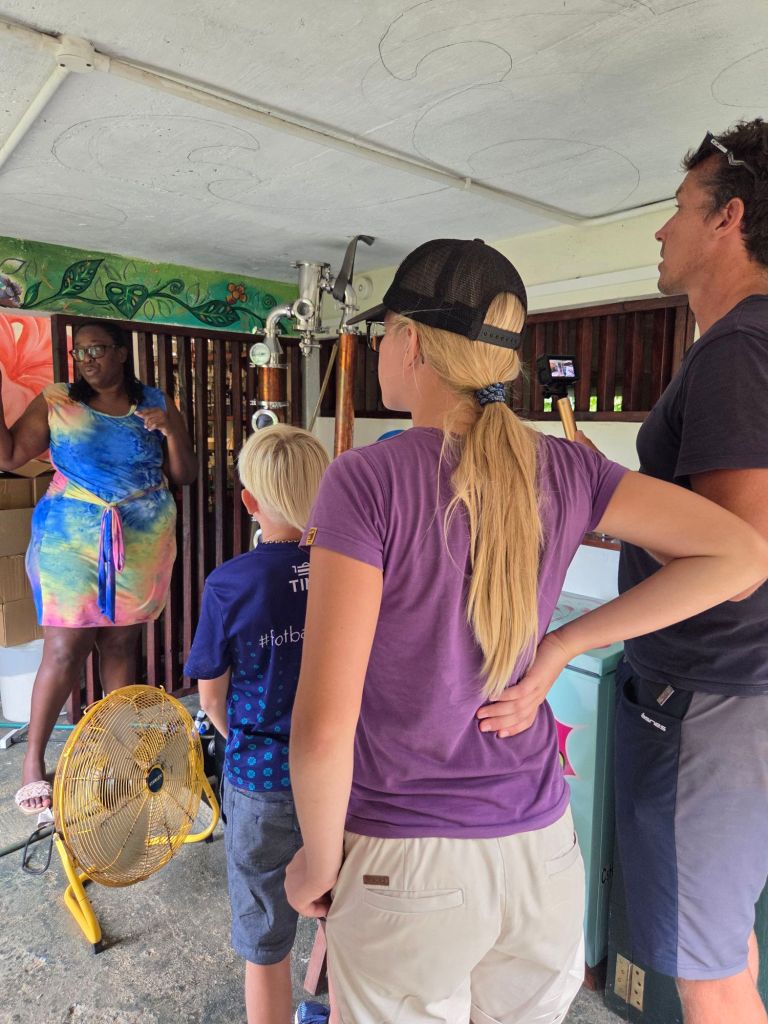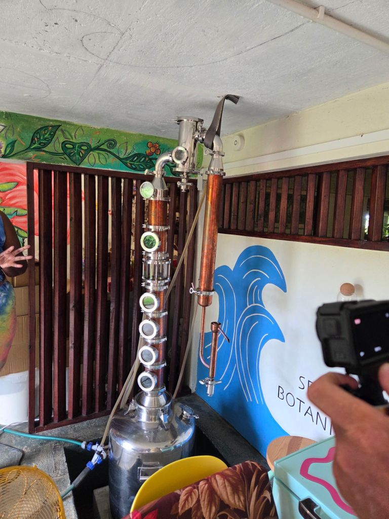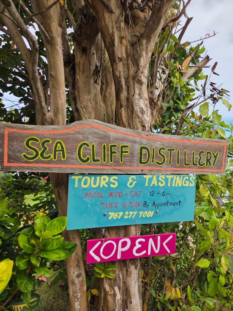 Siste stopp på turen var Sea Cliff Distillery, et lite gin-destilleri som ligger på en klippekant på nordøstkysten av Dominica, like utenfor Calibishie. Destilleriet er omgitt av tropisk hage, havutsikt og vill natur. Dette er ikke et tradisjonelt destilleri, men et lite, familieeid sted hvor bærekraft, natur og håndverk går hånd i hånd.