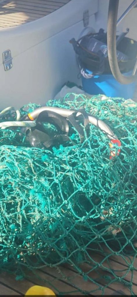 Turen fra Saint-Pierre endte med Roseau som første stopp på Dominica. Når vi nærmet oss Roseau oppdaget vi noe lysende grønt som hang bak oss. Det viste seg at vi hadde med oss en klyse med ødelagt garn.