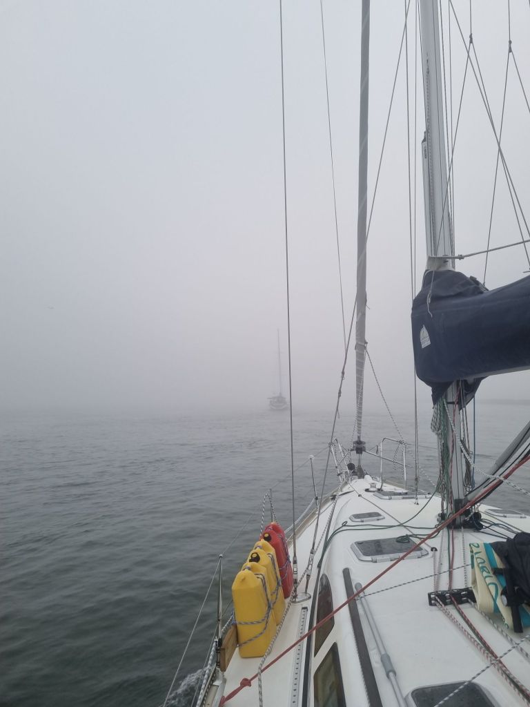 Samtidig begynner alle å kjenne litt på nervene for det som nå ligger foran oss. Dette blir den lengste etappen hittil, og selv om vi har god tid, godt værvindu og en godt forberedt båt, så kribler det litt ekstra i magen. Kanskje spesielt for gjestemannskapet — Tane og Onklav (tidligere kjent som tante Ane og onkel Olav) — som gikk fra nesten null seileerfaring til nesten 1000 nautiske mil i løpet av en knapp uke. Onklav fikk også et sterkt møte med “svingende landjording” da han kom i land igjen — ikke alltid like stas.