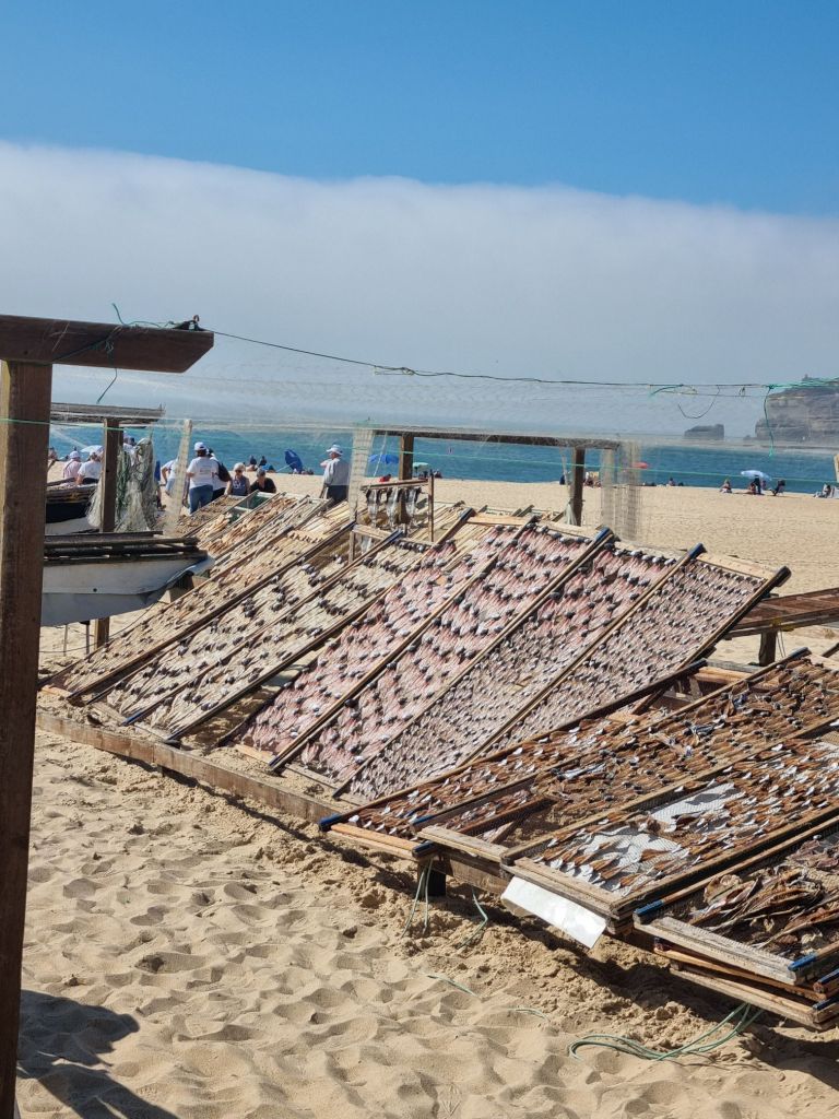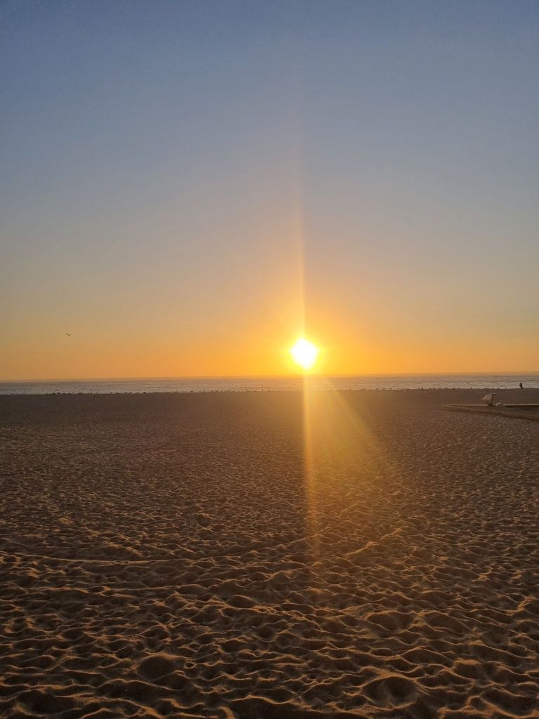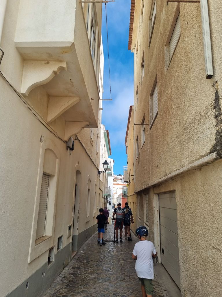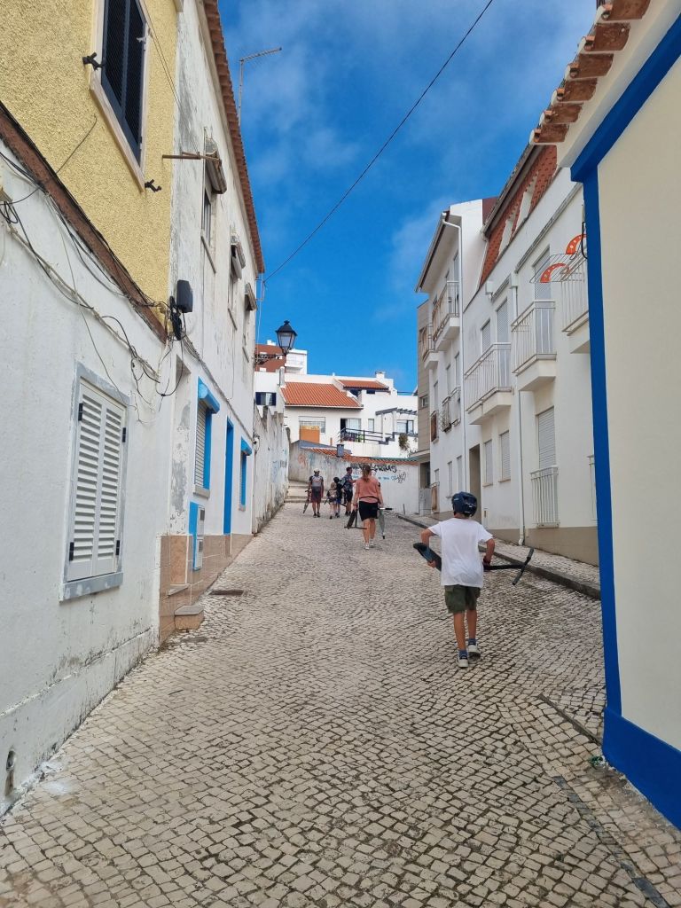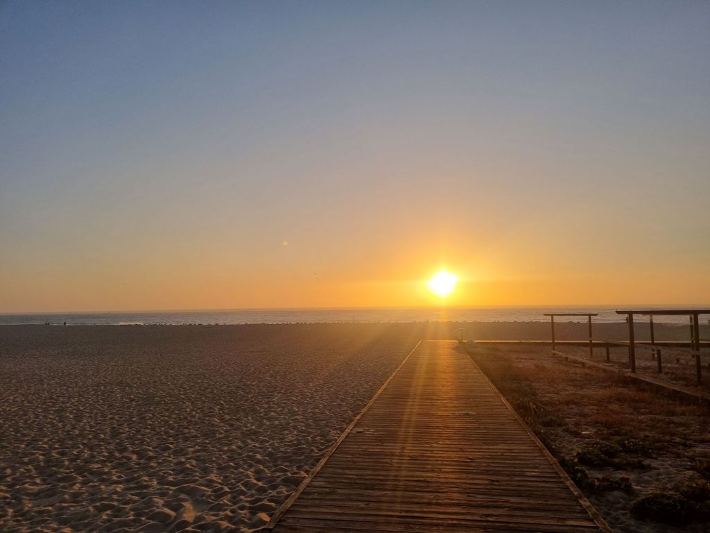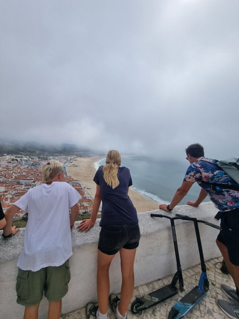Vi har også rukket litt sosiale aktiviteter. Vi har fått hilse på en hyggelig familie i den svenske båten SV Eden, og på en av de første dagene tok nesten hele gjengen — Sail What og svenske SV Eden — turen til Praia de Laginha, en lys sandstrand bare noen minutters gange fra marinaen.