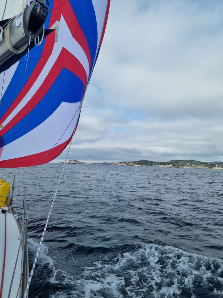 Et stort høydepunkt var likevel seilasen med gennaker for aller første gang. Det var en liten milepæl for oss, og noe vi har gledet oss til.
