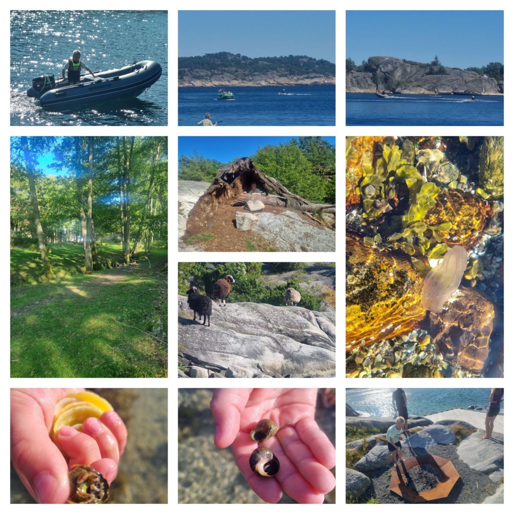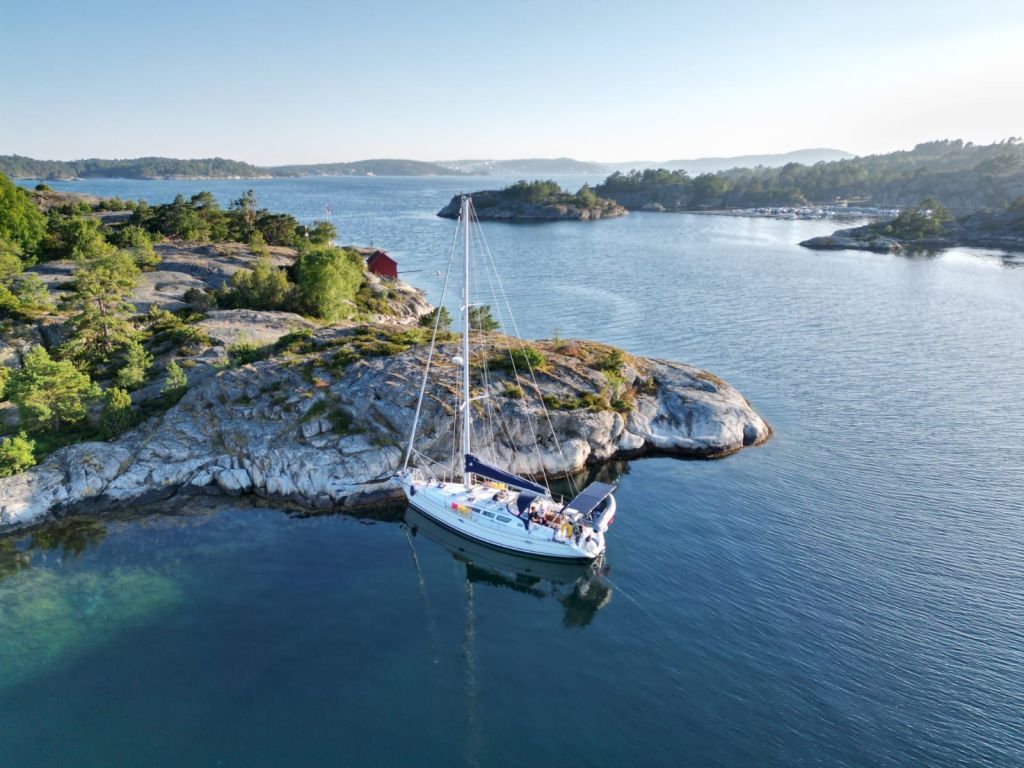 Planen var å legge til på Hattholmen utenfor Mandal, men det ble et kort opphold. Strøm og bølger jobbet mot oss ved brygga, og båten fikk kjørt seg mer enn vi var komfortable med – så vi trakk oss ut igjen og fant en rolig ankringsplass i stedet. Der ble vi i to netter. Godt skjermet, stille vann og tid til å bare slappe av og gjøre litt småfiks med båten.