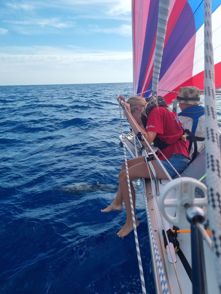 2.rev ble satt før Ane overtok stafettpinnen på nattevaktene, genoaen ble rullet litt inn og ut i de vekslende værforholdene. Alle nattevaktene hadde squal innom rundt båten, men ingen direkte treff, uten om Olav som fikk seg en skikkelig regnskyll. Nattens vinder har tatt oss en del lengre nord enn vi hadde planlagt, men litt etter solen sto opp vred vinden seg litt slik at vi kunne nærme oss den opprinnelige kurslinjen. Til lunsj i dag ble det bananlapper igjen, går mot slutten på bananene og forsåvidt levetiden på de som er igjen, så vi får se om vi har noe igjen til en siste runde i morgen. Alma og Trym har vært flinke med skolearbeidet, og har fullført mattebøkene sine, og har kun litt norsk igjen før vi setter strek for dette skole halvåret.