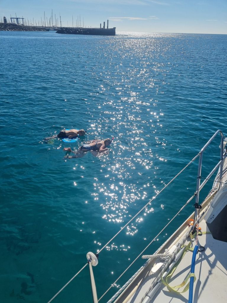 Ved ettermiddagsrapporteringen i WhatsApp gruppen vår, fikk vi beskjed om at en i båtene i gruppa vår har røket et undervant. Det er ikke noe umiddelbar fare for at masten faller ned, men vi brukte litt tid på å drodle ideer på hvordan midlertidig sikre og avlaste det gjenstående vantet. De skal melde tilbake i morgen hvordan det går. Så det setter ting i perspektiv, her har vi hatt en ganske så perfekt dag og andre får det som er temmelig store utfordringer bare noen nautiske mil unna, men vi krysser fingrene for at det går bra denne gangen også.