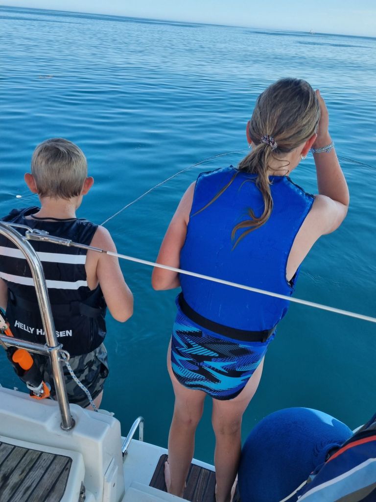 På vei tilbake til jollene ble ungene enige: de ville snorkle igjen. Tørt turtøy ble byttet ut med våtdrakter og svømmeføtter, og ikke lenge etter var de i vannet – klare for å utforske verden under overflaten. Temperaturen lå rett over 13 grader, så eventyret ble av det korte, men like fullt modige slaget.
